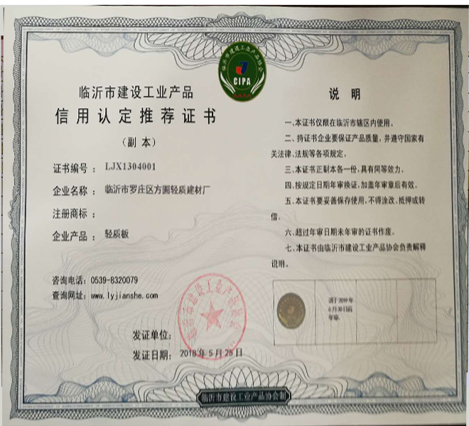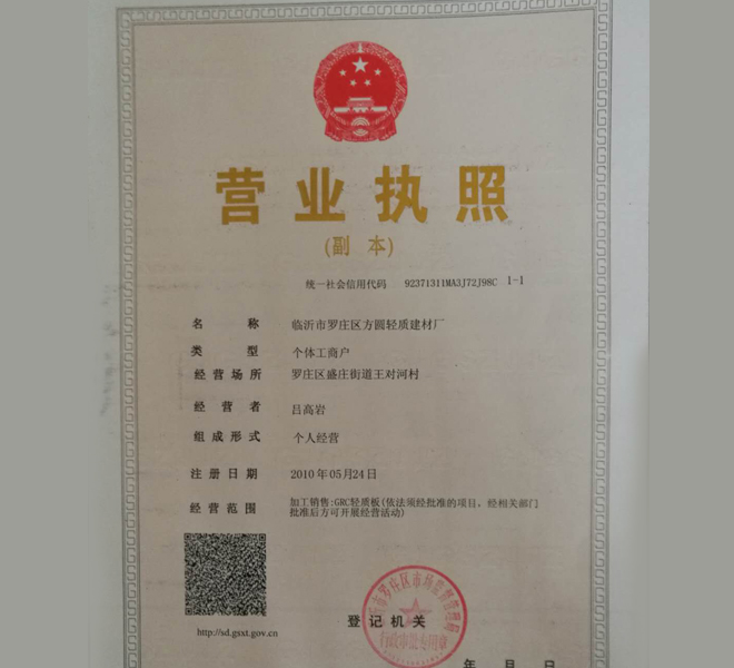 臨沂方圓輕質(zhì)建材廠(chǎng)(原臨沂金浩輕質(zhì)建材廠(chǎng)),始建于1998年,位于臨沂市羅莊區(qū)王對(duì)河,該廠(chǎng)占地面積6000㎡,具有生產(chǎn)GRC輕質(zhì)內(nèi)墻板10萬(wàn)平方米的能力。